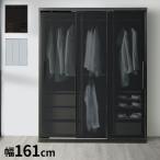 ワードローブ クローゼット 幅161×奥行60.5×高さ200.5cm フルオープンレール ガラス戸 ブラック ホワイト 木製 洋服タンス 壁面収納 チェスト 代引不可