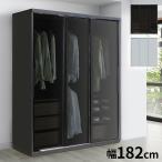 ワードローブ クローゼット 幅182×奥行60.5×高さ200.5cm ガラス戸 ブラック ホワイト フルオープンレール 木製 洋服タンス 壁面収納 チェスト 代引不可