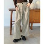 スラックス パンツ ストライプ×フロッキーハートワイドパンツ レディース