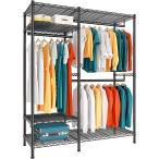 Huaniun ハンガーラック 頑丈 服 収納 ワードローブ 衣類 大容量 ハンガーシェルフ 棚付き 洋服掛け スチールラック 幅145×奥40