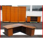 法人限定 役員セット 4点セット 両袖机 サイドデスク 書棚 ワードローブ エグゼクティブデスク 社長机 役員机 袖机 デスク ロッカー 収納庫 おしゃれ VP-391