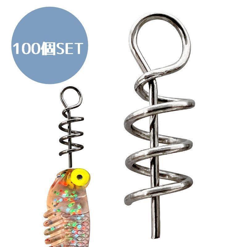 ルアーピン 釣り 100個セット スクリューピン クランクフック ワーム フック フィッシング 固定