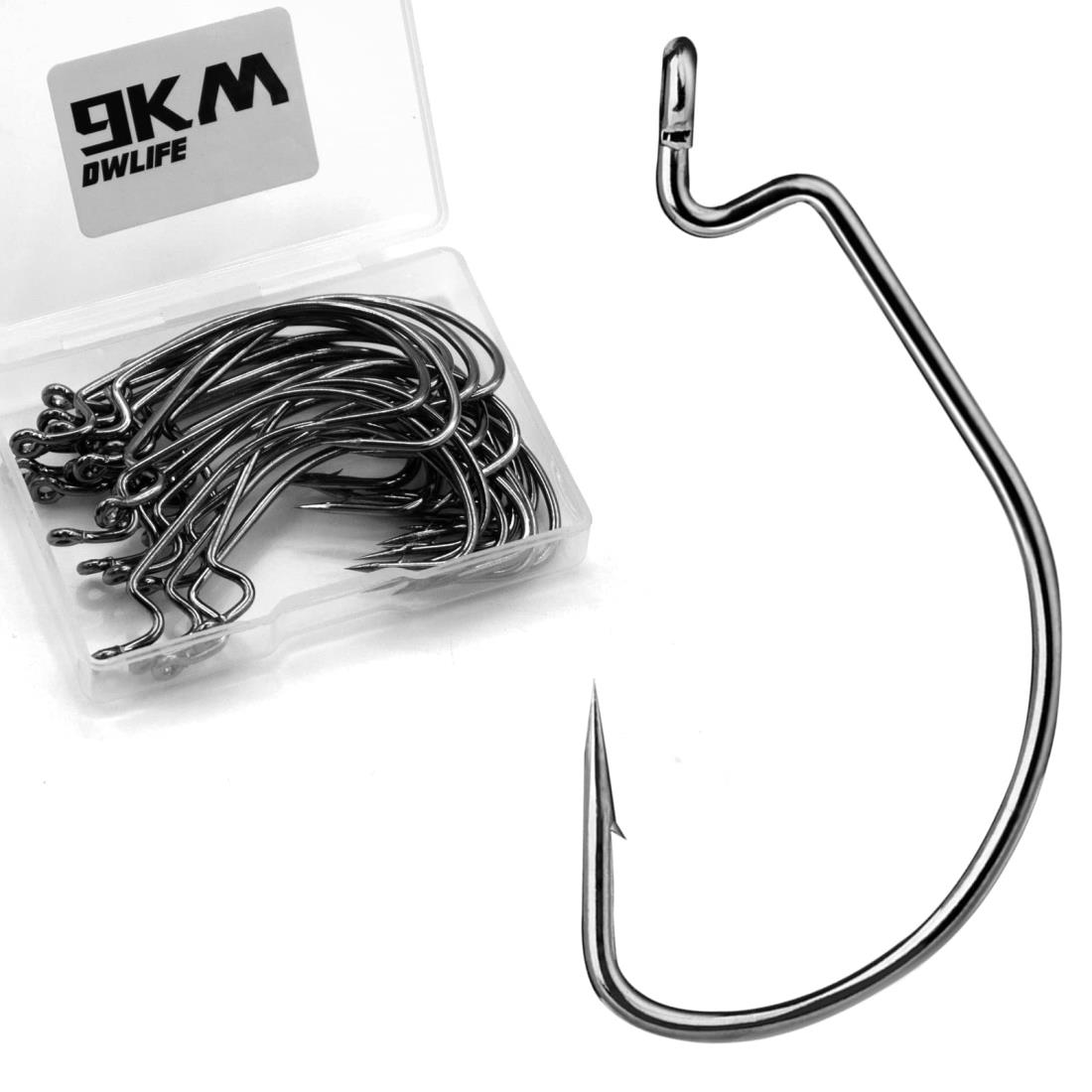 9KM DWLIFE オフセットワームフック 釣り針 50本 バス釣り テキサス・フック 高炭素鋼 高韧性 広い隙間 ワームフィッシュフック 海水淡水