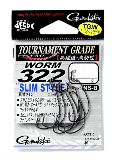 【5枚セット/クリックポスト】 がまかつ(gamakatsu) ワームフック ワーム 322 スリムスタイル NSブラック