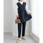 スラックス パンツ コーデ決まるペプラムジレセットスーツ レディース