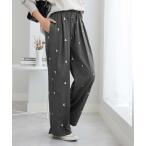 パンツ 花柄刺繍EASYストレートパンツ レディース