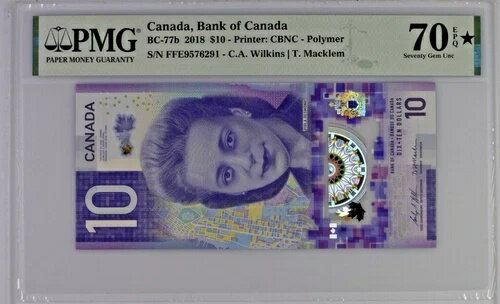 2018年 カナダ銀行 10ドル ヴィオラ・デスモンド紙幣 BC-77b PMG 70 ?? スタージェム UNC