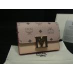 ■極美品■ MCM エムシーエム メーナ ヴィセトス柄 レザー 二つ折り 財布 ウォレット 小銭入れ カード入れ ライトピンク系 BN5370