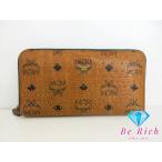 MCM エムシーエム 二つ折り財布 ラウンドファスナー 長財布 スタッズ ヴィセトス モノグラム コニャック キャメル レザー【中古】 bs3621