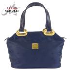 美品 MCM エム シー エム ヴィセトス ネイビー ゴールド金具 ナイロン ハンドバッグ トートバッグ レディース 600082
