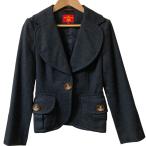 美品 Vivienne Westwood ヴィヴィアンウエストウッド レッドレーベル カシミヤブレンド オーブボタン テーラードジャケット 2 ブラック レディース 古着 中古
