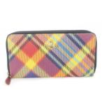 ヴィヴィアンウエストウッド Vivienne Westwood 長財布 小銭入れあり ラウンド PVC レザー 革 オーブ ロゴ チェック 赤