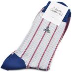 靴下 1足 ヴィヴィアン ウエストウッド メンズ バイカラー ストライプ ライン ロゴ 刺繍 ライト ネイビー パウダー ブルー 赤 レッド 25-26 cm 男性 紳士 日本製