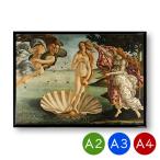 サンドロ ボッティチェッリ ヴィーナスの誕生 A3 サイズ ポスター アート おしゃれ 絵画 インテリア 北欧 イラスト マット紙 艶消し アートパネル 額 フレーム デザイン 壁掛け ギフト 新築祝い ディスプレイ 速達 送料無料