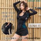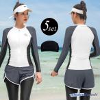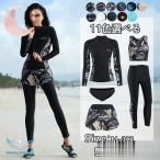 体型カバー 水着 大きいサイズ フィットネス レディース 長袖 ラッシュガード 5点 上下 セット ママ 水着の上から着る服 夏 海 プール 黒