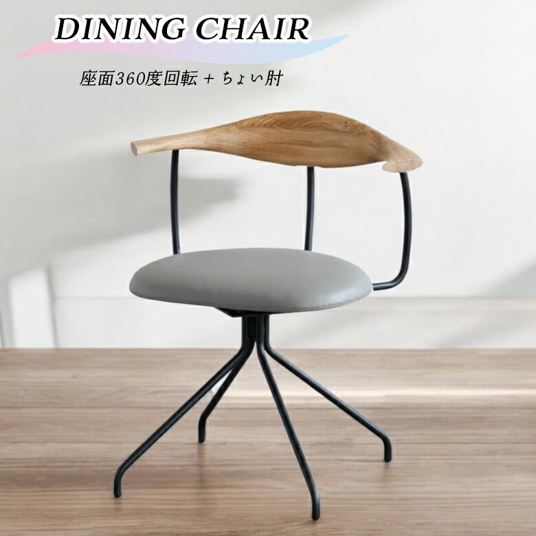 【全商品に使える12%offクーポンあり!!】 回転チェアー 回転式ダイニングチェア 単品 1脚 肘付き おしゃれ モダン 北欧 インダストリアル ハーフアーム 食卓椅子 回転式 チェア PVC 合皮 デスクチェア 肘掛け付き ちょい肘 オーク アイアン ブラック