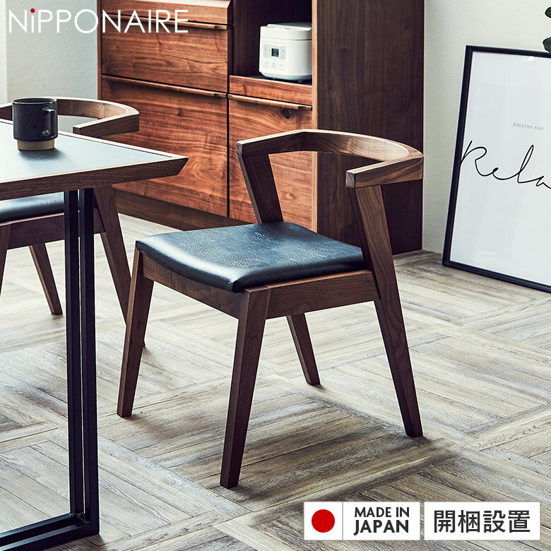 【全商品に使える2%offクーポンあり!!】 ダイニングチェア 単品 肘付き 背もたれ付き 完成品 おしゃれ シンプル 1脚 国産 スタイリッシュ ウォールナット 高級感 北欧 天然木 無垢 ハーフアーム チェアー セミアーム ちょい肘 椅子 イス 食卓椅子 PVC 合皮