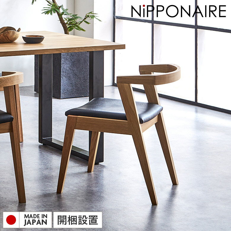 【全商品に使える12%offクーポンあり!!】 ダイニングチェア チェアー 単品 1脚 おしゃれ シンプル ハーフアーム 肘付き ちょい肘 国産 木製 オーク 無垢 PVC 合皮 北欧 日本製 完成品 スタイリッシュ ナチュラル セミアーム 椅子 イス 食卓椅子 高級感