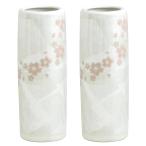 花瓶 銀彩桜 九谷焼 6寸 高さ19cm 陶器 日本製 白 桜柄 銀彩 和風 高級 上品 花器 仏壇用 神棚用 一輪挿し 和モダン 2本 セット -962