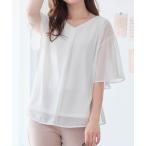 ブラウス シャツ インナー付フレアー袖タックブラウス レディース