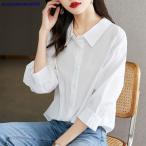 ガーゼ 綿麻 シャツ ブラウス レディース トップス 長袖 七分袖 インナー ナチュラル 着回し 気質 上品 柔らかい チュニック オフィス ビジネス 無地 ゆるシルエ