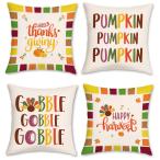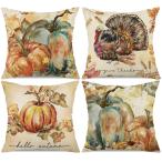 【並行輸入品】秋のカボチャクッションカバー 16x16インチ 4枚セット 水彩 パンプキン 七面鳥 秋の収穫 装飾スローピローケース 秋 感謝祭