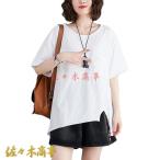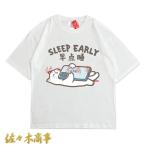 学生 メンズ レディース Tシャツ インナー かわいい 猫柄 プリント 三分袖 ゆったり 体型カバー コンフォート 大きいサイズ コットン