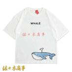 メンズ レディース 学生 Tシャツ インナー 三分袖 トップス サマーウェア 大きいサイズ プリント クジラ柄 春夏秋 ファッション 軽量