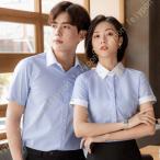 シャツ ブラウス レディース 事務服 半袖 三分袖 3分袖 通勤 制服 ボウタイ スーツ インナー リボン付き ビジネス オフィス ホワイト 青 ストライプシャツ