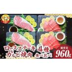ふるさと納税 牛肉 ロース 香川県 三木町 《ステーキ&焼肉4種食べ比べ》A4・A5等級 黒毛和牛ロースステーキ&カルビ焼肉セット 計960g|肉 黒毛和牛 焼肉 …