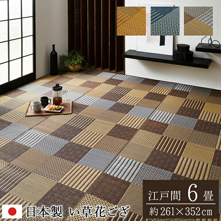 い草ラグ 夏用 国産 い草 上敷き 6畳 花ござ 花茣蓙 い草カーペット カーペット い草 ラグ い草ラグ モダン 袋織 江戸間6畳 (約261×352cm) イ草 いぐさ い草上敷き ござ 茣蓙 蓙 おしゃれ センターラグリビングラグ