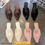 ミュール サンダル レディース 秋冬 チャンキーヒール ふわふわ もこもこ あったか ファーサンダル ヒールサンダル ローヒール 美脚 履きやすい 滑り止め 防寒