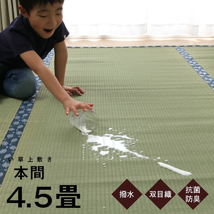 [先着3名様20%offクーポン!3/4 20時〜] 国産 い草 上敷き カーペット 「 梅花(ばいか) 」 江戸間4.5畳 (約261×261cm) い草 敷き詰め ござ 茣蓙 敷物 畳 カバー 和室 和風 たたみ いぐさ ゴザ 抗菌 防臭 調湿 ラグ 涼しい 糸引織 イケヒコ 盆 夏 リフォーム