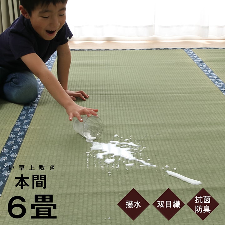 【クーポンで10%OFF★3/4 20:00〜3/5 23:59】 補修テープ付き 自分で切れる い草 上敷き みすず 江戸間 8帖 8畳 フリーカット はっ水 防カビ 消臭 裏貼り 畳の保護