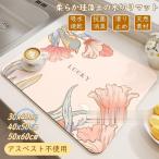 水切りマット 珪藻土 キッチン用 マット おしゃれ 拭ける アスベスト不使用 大判 瞬間吸水 速乾 水切りラック 抗菌 ソフト 鍋敷き 滑り止め シリコン 食器置き