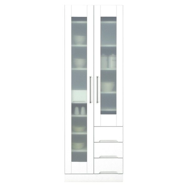 食器棚 台所 キッチン台 キッチンボード 戸棚 キッチン 整理 収納 幅60cm ホワイト 上置き 飛散防止ガラス扉 耐震ラッチ 可動棚付 日本製 国産 マルチボード 完成品 玄関渡し 白 日本製のキッチン収納家具 飛散防止ガラス扉付きの上置き棚付きカップボード 幅60cmのホワイ