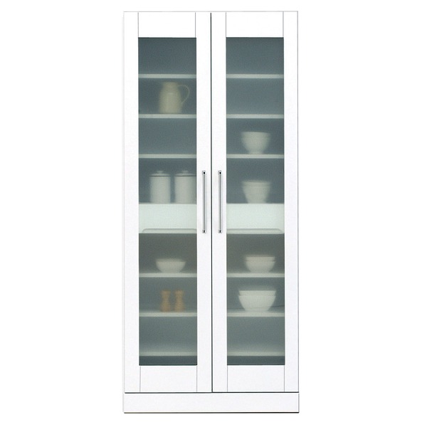 食器棚 台所 キッチン台 キッチンボード 戸棚 キッチン 整理 収納 幅80cm ホワイト 上置き 飛散防止ガラス扉 可動棚付き (置き台 置き場付き) 日本製 国産 マルチボード 完成品 玄関渡し 白 日本製の広々としたキッチン収納スペース、上置き棚付きの食器棚 飛散防止ガラス