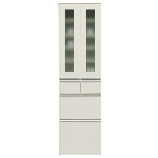 食器棚 台所 キッチン台 キッチンボード 戸棚 キッチン 整理 収納 幅50cm ホワイト 木目調 ガラス扉 上置き付き 上台扉耐震ラッチ付き 日本製 国産 ダイニングボード 完成品 玄関渡し 白 日本製の木目調ホワイトカップボード 食器棚とキッチン収納が一体化し、上置き棚付き