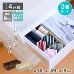3個セット 衣装ケース 引き出し収納ケース 仕切り ボックス 整理整頓 衣類 下着 小物 使いやすい 靴下 幅18cm 奥行38.5cm 高さ9cm インナーボックス スリム4分割