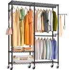 AZAKBLハンガーラック 頑丈 洋服ラック 大容量 キャスター付き クローゼット ワードローブ ハンガーラック2段 洋服掛け 防サビ加工 組み立て簡単 高