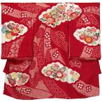 お宮参り女の子初着 赤色 桶絞り鹿の子絞り京友禅 手まり花柄 古典調 一つ身祝着