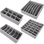 収納ボックス 下着 衣類 靴下 ネクタイ ブラ 仕切り 箱 小分け 省スペース 折り畳み式 24 8 7 6 マス 4個セット(グレー)