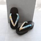 下駄 レディース 浴衣 ニコアンティーク M(23.5-25.0cm) 古典柄 レトロ アンティーク系 下駄 絞り 青系 高右近 焼