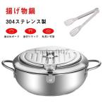 揚げ物鍋 ステンレス 20cm 天ぷら鍋 てんぷらなべ 揚げ物 両手天ぷら鍋 ステンレス鍋 304ステンレス 鍋 温度計付き 温度制御 油切りラック