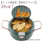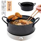 両手鍋 天ぷら鍋 なべ 天ぷら鍋 両手天ぷら鍋 フライ鍋 ガス火対応 揚げ鍋 揚げ物鍋 アミ付き 20cm 鉄鍋 IH対応 油切りラック 20センチ
