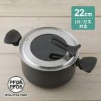 両手鍋 22cm IH対応 ママディナー ガラス蓋付き ( ih ガス火 対応 両手なべ 22 センチ ブラック )