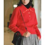 ニット セーター 接結ウールドットボタンハイネックニット/イージーケア レディース