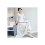 レースワンピース レディース ロング マキシ丈 秋物 着痩せ vネック Aライン エレガント 長袖 無地 上品 刺繍花柄 パーティードレス 大人 結