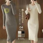 ニット ワンピース レディース ロング ワンピース ニットワンピース ワンピ 長袖 春 秋 冬 タイトワンピース ミモレ丈 無地 おしゃれ 着痩せ シンプル 可愛い 結