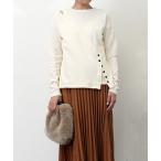 ニット セーター 接結起毛フライス釦デザイントップス レディース